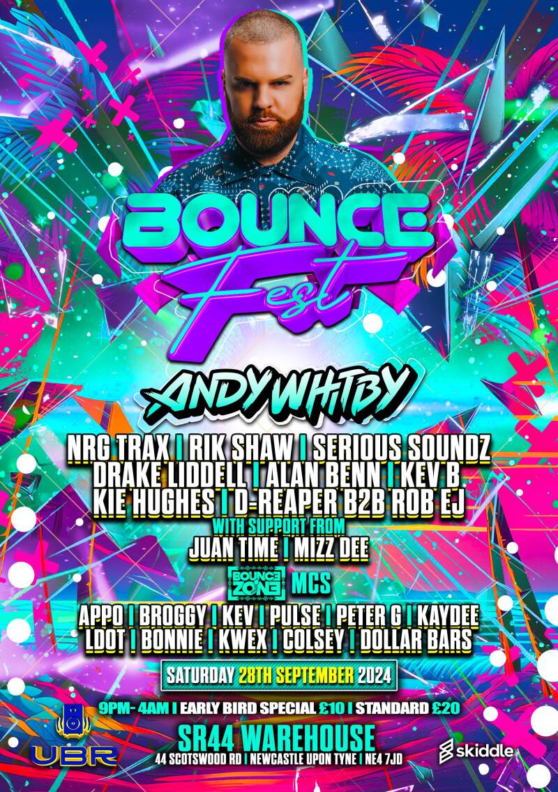 Join us for an absolute insaneee night with a sick line up . We are joined by the legend himself Andy Whitby alongside will be NRG Trax, Rik Shaw, Alan Benn, Kie Hughes, Serious Soundz, Drake Liddell, Kev B and D-Reaper B2B with Rob EJ. Plus Support from Juan Time and Mizz Dee! Plus the BounceZone M.C's. This is a night you will not want to miss ๐๐